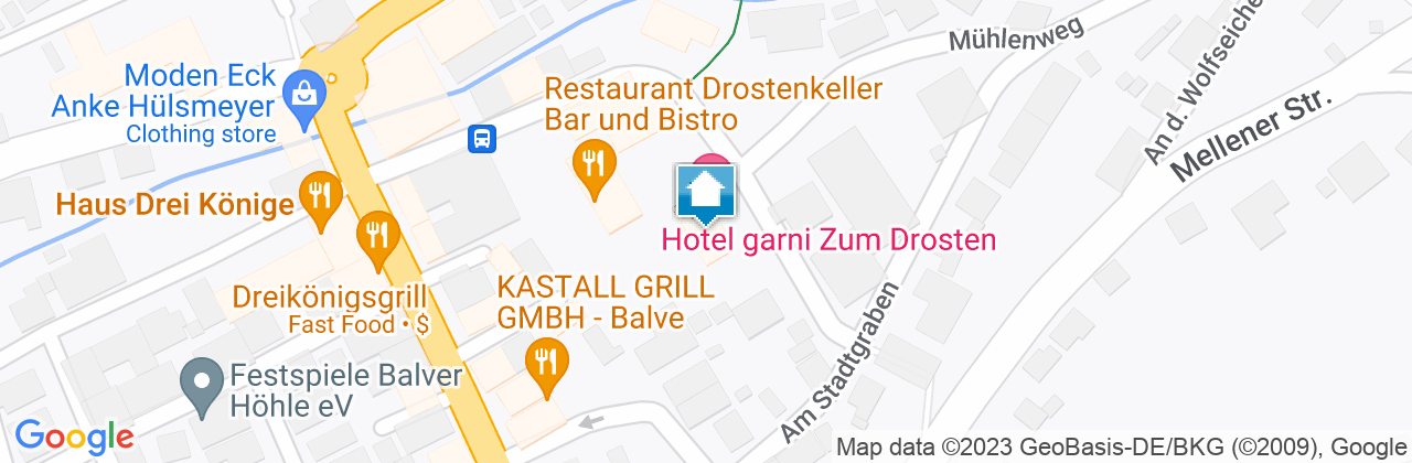 Herzlich willkommen im Hotel garni "Zum Drosten" Balve Wir bieten Ihnen die ideale Unterkunft für geschäftliche Übernachtungen - Familienbesuche - Gruppenausflüge - Ferienaufenthalte - Kurzurlaube. Unser Hotel liegt zentral und doch ruhig und verfügt über einen eigenen Parkplatz vor dem Haus. Wir sind der Ausgangspunkt für ausgedehnte Wanderungen, Fahrrad- und Motorradtouren in die waldreiche Umgebung oder zu den Binnenseen. Sechs geschmacksvolle Doppelzimmer - davon zwei mit Balkon. Alle Zimmer sind mit Dusche oder Badewanne, WC, SAT-TV und WLAN ausgestattet.Wir bitten um Verständnis, dass unser Haus eine rauchfreie Zone ist. Zum "Inhalieren" stehen Ihnen je nach Zimmer ein Balkon oder unsere große Terrasse zur Verfügung.